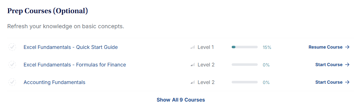 먼저 Prep Courses의 경우엔 필수로 이수하지 않아도 되는 기본 강의와 같은 느낌입니다.